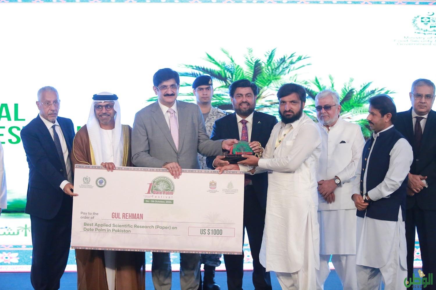 في حين جرى تكريم أفضل ثلاث شخصيات ساهمت في خدمة قطاع زراعة النخيل وإنتاج التمور في الباكستان: