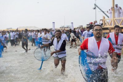 وعند وصول سموه لموقع الفعالية، أطلق فعاليات مسابقة الصيد التي تضمنت عروضًا مائية واستعراضًا بحريًا مصاحبًا لمجريات السباق.
