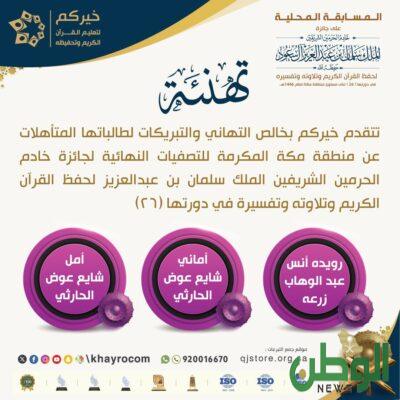 طالبات خيركم يمثلن ( مكة ) في جائزة الملك سلمان القرآنية