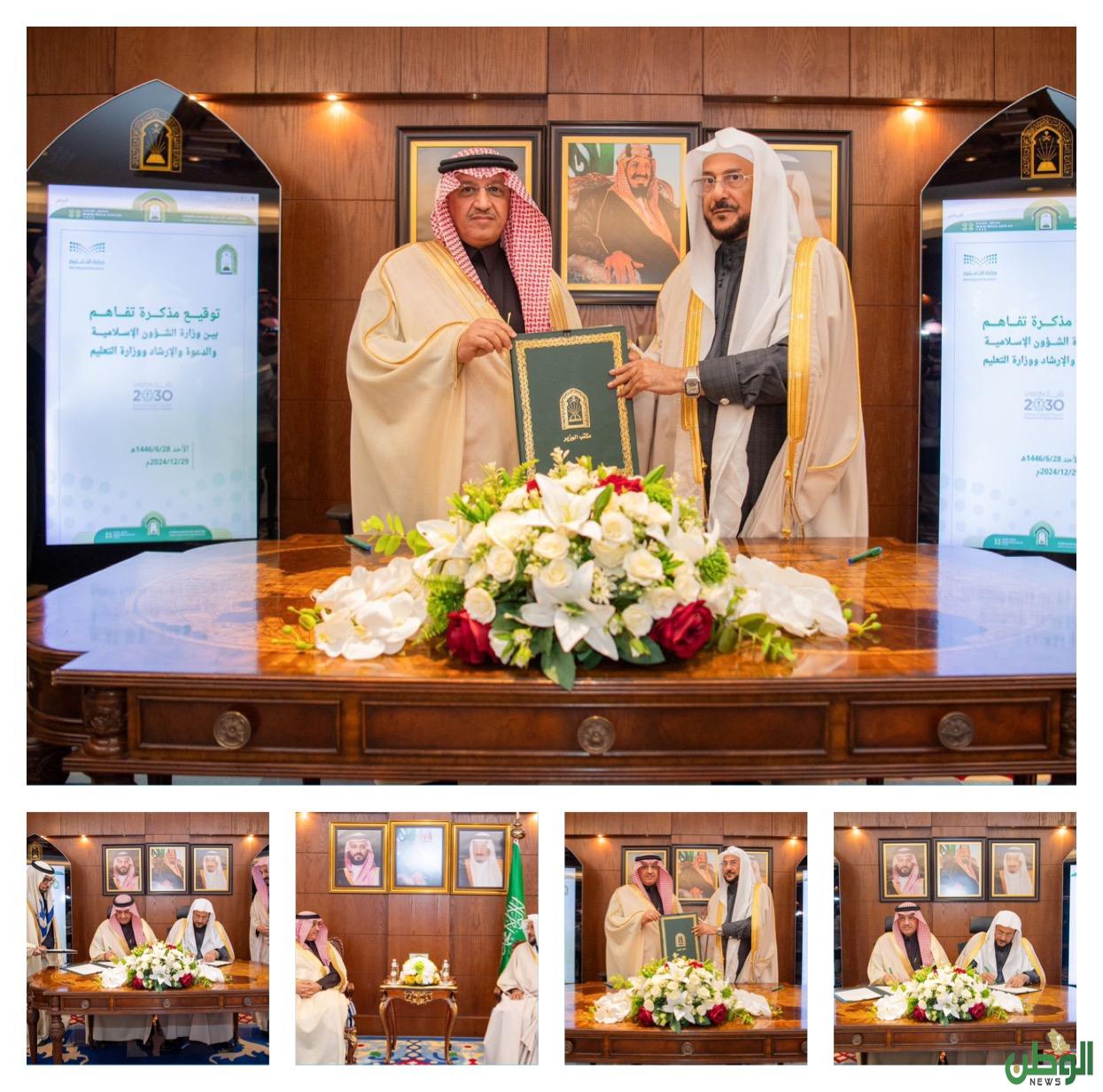 وزارة الشؤون الإسلامية ووزارة التعليم توقعان مذكرة تعاون مشترك في مجال تعزيز الوعي الفكري والانتماء الوطني وتعزيز الوسطية والاعتدال لمنسوبي التعليم .