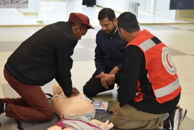 تنفيذ يوم تدريبي لهيئة الهلال الأحمر السعودي في مول الباحة ضمن مشروع “معاذ” للسلامة الإسعافية
