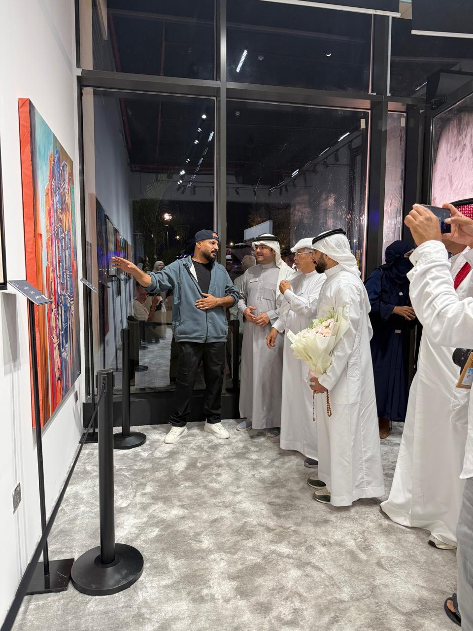 الفنان نذير ياوز و رئيس مجموعة ارت دوز الفنان عمر المرزوقي و الفنان نهار مرزوق والفنان سعود خان ونخبة من الفنانين ومحبي الفن التشكيلي