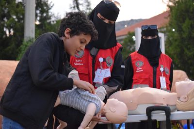 أما على مستوى المبادرات المجتمعية، فقد نُفذ مشروع “معاذ” لتركيب أجهزة الإنعاش القلبي (AED) في الجهات الحكومية والخاصة وتدريب الموظفين على استخدامها، بالإضافة إلى مبادرة “النادل المنقذ” التي استهدفت العاملين في قطاع تقديم الأغذية والمشروبات، ومبادرة “المسعف الصغير” التي تقدم محتوى تدريبي اسعافي موجه للأطفال