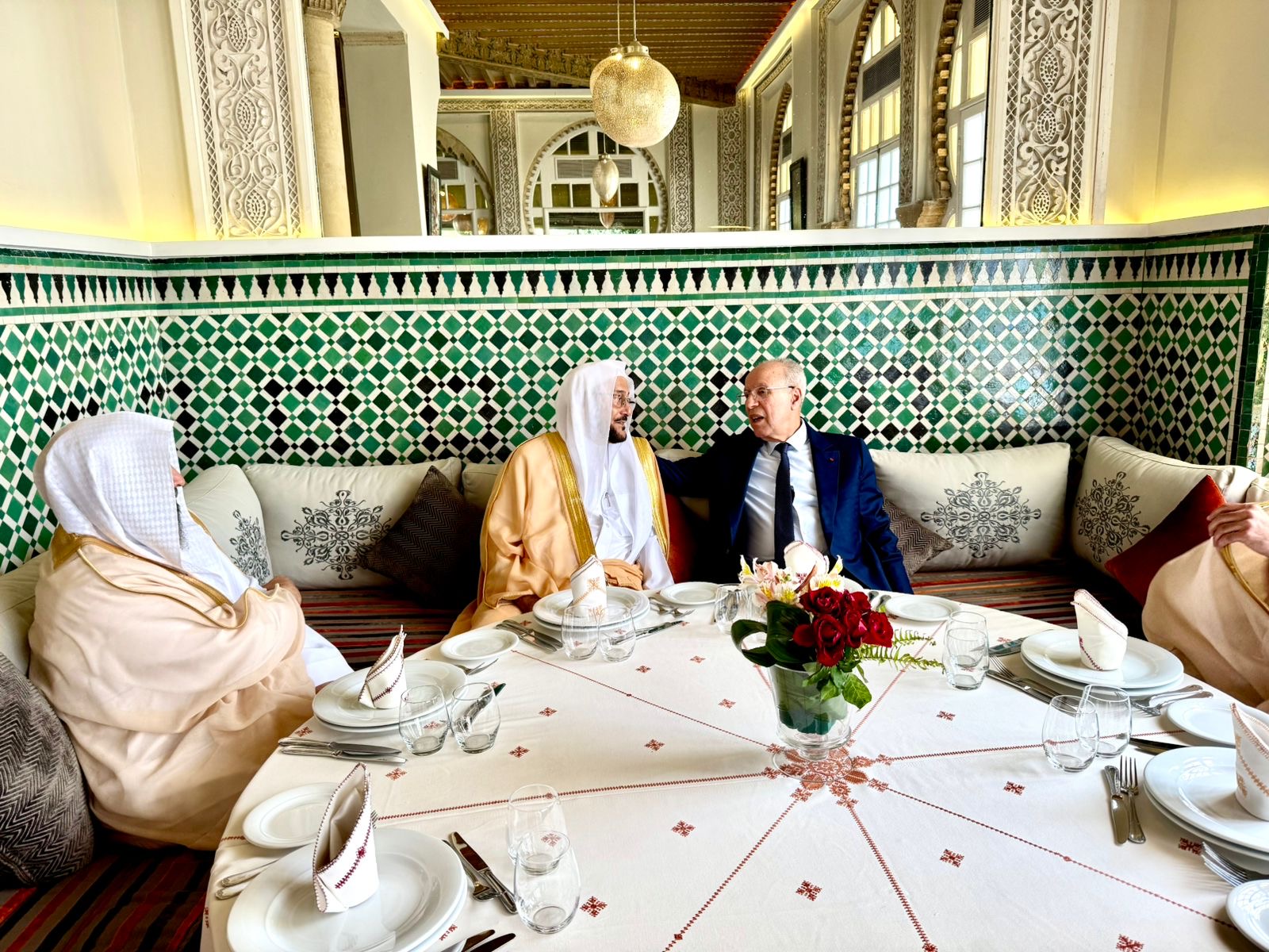 أقام معالي وزير الأوقاف والشؤون الإسلامية بالمملكة المغربية السيد أحمد التوفيق، اليوم الخميس العاشر من شهر ذي القعدة 1446هـ، مأدبة غداء رسمية تكريما لمعالي وزير الشؤون الإسلامية والدعوة والإرشاد بالمملكة العربية السعودية، الشيخ الدكتور عبداللطيف بن عبدالعزيز آل الشيخ والوفد الرسمي المرافق له، وذلك خلال زيارته الرسمية الحالية للمملكة المغربية الشقيقة.