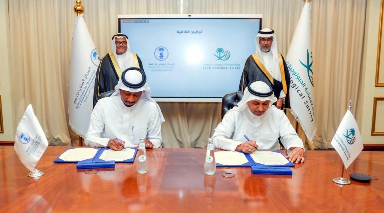 وقّعت هيئة المساحة الجيولوجيّة السعوديّة اليوم، اتفاقيّة تعاون مشترك مع المركز الوطني للأرصاد، بحضور الرئيس التنفيذي للهيئة المهندس عبدالله بن مفطر الشمراني، والرئيس التنفيذي للمركز الدكتور أيمن بن سالم غلام، وتهدف إلى تعزيز أوجه التكامل في المجالات الفنيّة والعلميّة ذات الاهتمام المشترك، وتبادل الخبرات والمعرفة بما يخدم المصلحة الوطنيّة , ويسهم في تحقيق مستهدفات رؤيّة المملكة 2030.