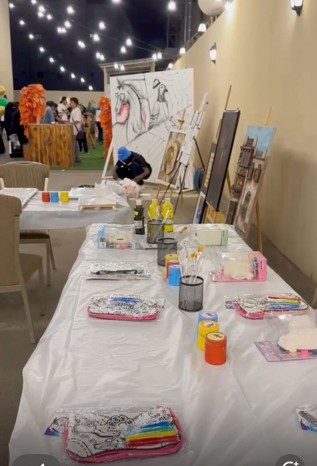 وشارك في الفعالية عدد من الفنانين والفنانات قدّموا أعمالًا متميزة في الرسم التشكيلي والخط العربي، وأسهموا في تعليم الصغار أساسيات الرسم والتلوين، مما أضفى أجواء إبداعية ثرية على الفعالية.