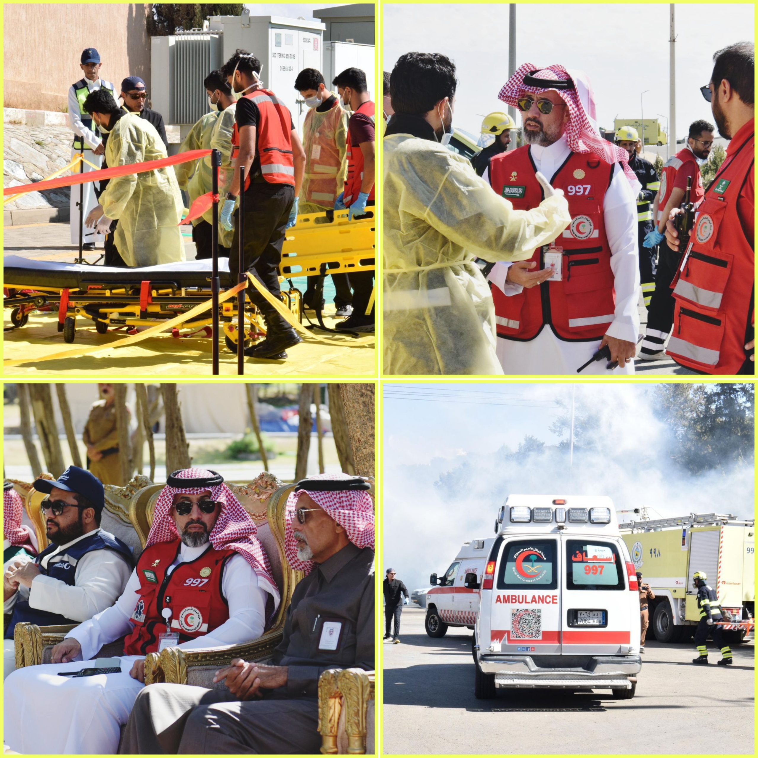 شاركت هيئة الهلال الأحمر السعودي بمنطقة الباحة صباح يوم الثلاثاء الموافق 27/05/1447هـ ، بالتعاون مع الدفاع المدني بمنطقة الباحة، في تنفيذ الخطة الفرضية لحادث حريق بمنتزه غابة رغدان، وذلك ضمن جهود رفع مستوى الجاهزية وتعزيز سرعة الاستجابة والتعامل مع الحوادث في المواقع المفتوحة.